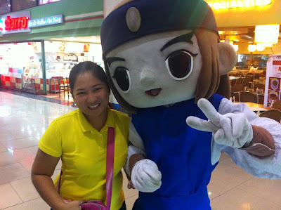 Bago ko bumili nagpapicture muna ko sa mascot. Sayang ayaw ni fluffy, ang cute cute pa naman nila. Sa totoo lang habang pinagmamasdan silang dalawa, ako nahihirapan. Kase hirap sila makakita, kelangan itabingi yung ulo ng maskot para makasilip kung may gustong magpa picture. Naka ilang beses ko kalabitin yun babaeng mascot bago nya ko napansin sa gilid nya.
